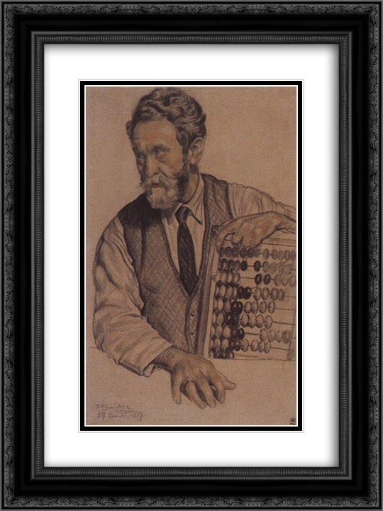 Man with accounts (V.A. Kastalsky) 18x24 Black Ornate Wood Framed Art Print Poster with Double Matting by Kustodiev, Boris