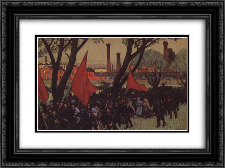 May Day demonstration in Putilov 24x18 Black Ornate Wood Framed Art Print Poster with Double Matting by Kustodiev, Boris