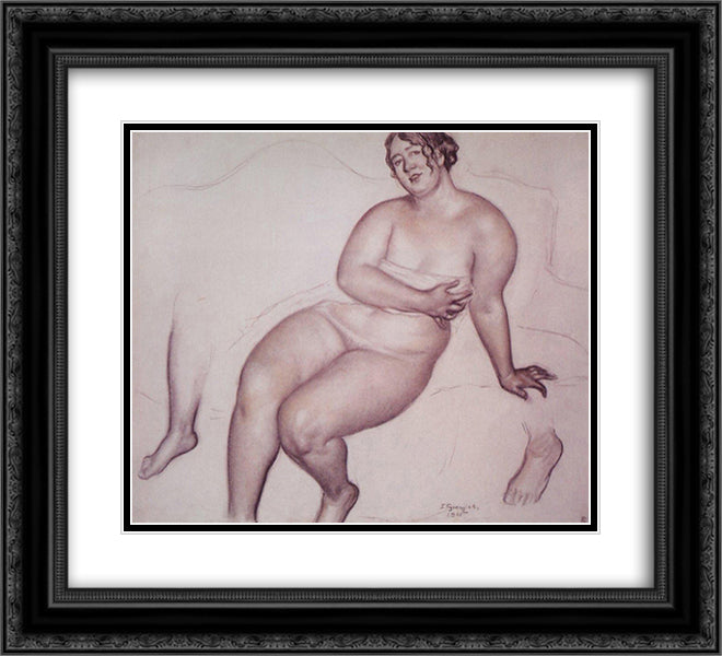 Model. Right foot, left foot 22x20 Black Ornate Wood Framed Art Print Poster with Double Matting by Kustodiev, Boris