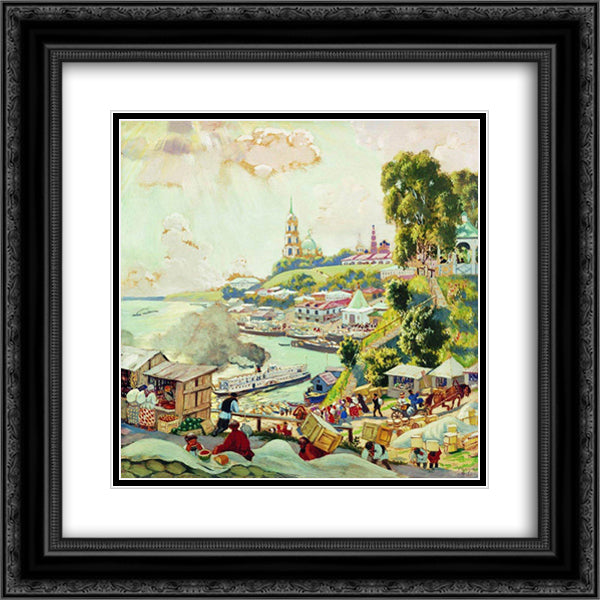 On the Volga 20x20 Black Ornate Wood Framed Art Print Poster with Double Matting by Kustodiev, Boris