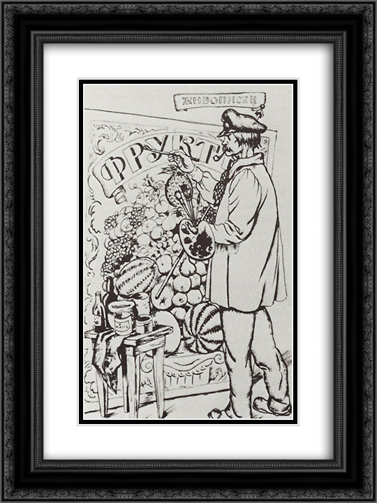 Painter 18x24 Black Ornate Wood Framed Art Print Poster with Double Matting by Kustodiev, Boris