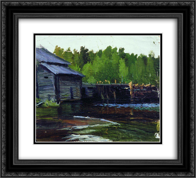 Pavlov's mill on the river Yahrust 22x20 Black Ornate Wood Framed Art Print Poster with Double Matting by Kustodiev, Boris
