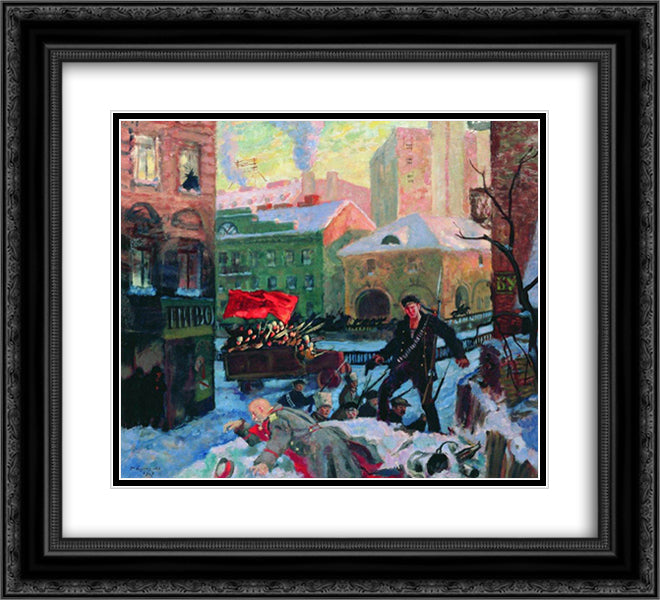 Petrograd on February 22x20 Black Ornate Wood Framed Art Print Poster with Double Matting by Kustodiev, Boris