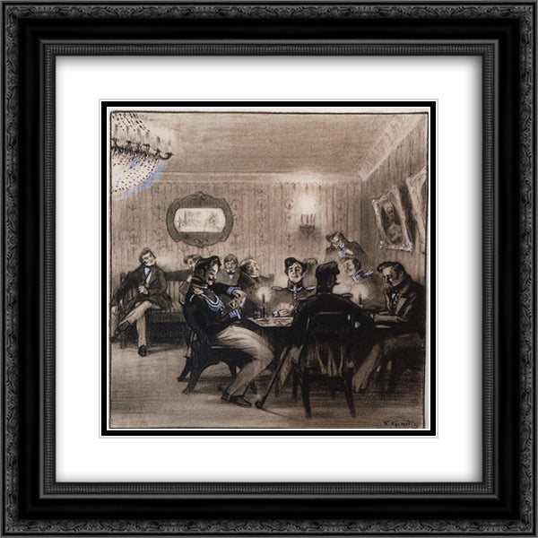 Playing the whist 20x20 Black Ornate Wood Framed Art Print Poster with Double Matting by Kustodiev, Boris