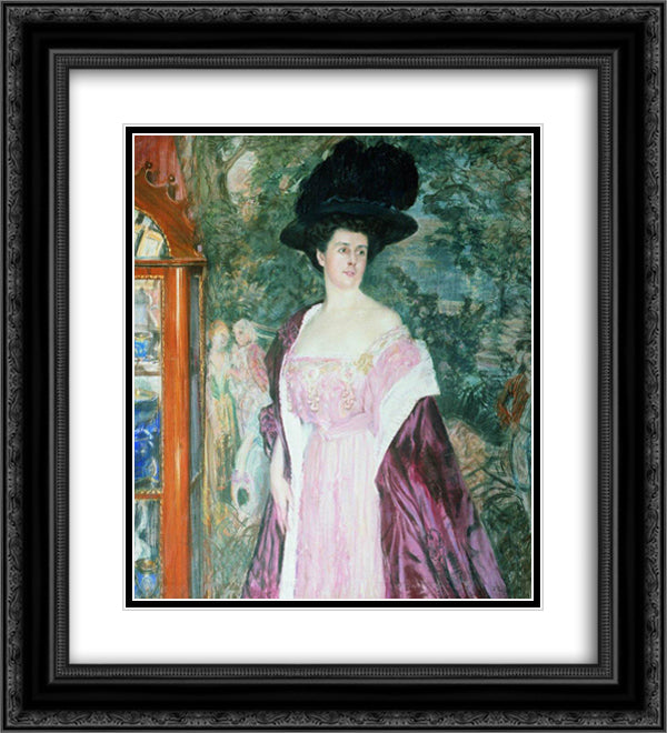 Portrait of A.D. Romanova 20x22 Black Ornate Wood Framed Art Print Poster with Double Matting by Kustodiev, Boris