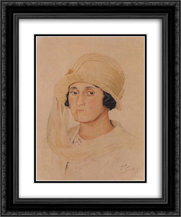 Portrait of A.K. Kashparova 20x24 Black Ornate Wood Framed Art Print Poster with Double Matting by Kustodiev, Boris