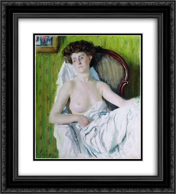 Portrait of a Lady. Model 20x22 Black Ornate Wood Framed Art Print Poster with Double Matting by Kustodiev, Boris