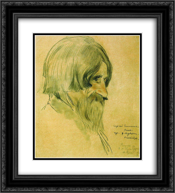 Portrait of a Peasant Kotov 20x22 Black Ornate Wood Framed Art Print Poster with Double Matting by Kustodiev, Boris