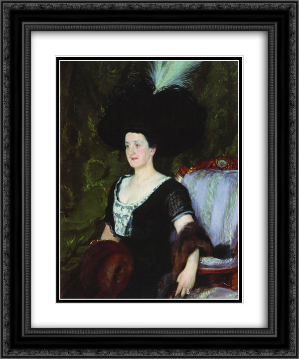 Portrait of a Woman (A.V. Rzhevuskaya) 20x24 Black Ornate Wood Framed Art Print Poster with Double Matting by Kustodiev, Boris