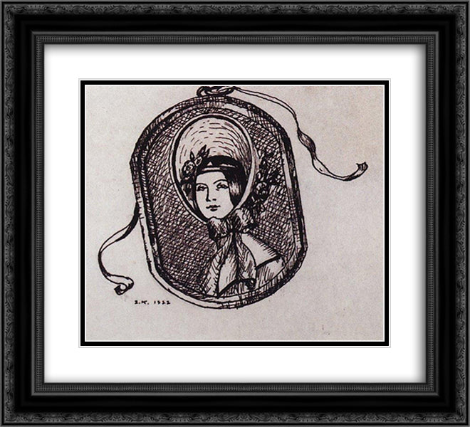 Portrait of a Woman (Portrait of the lord Laputin's bride ) 22x20 Black Ornate Wood Framed Art Print Poster with Double Matting by Kustodiev, Boris