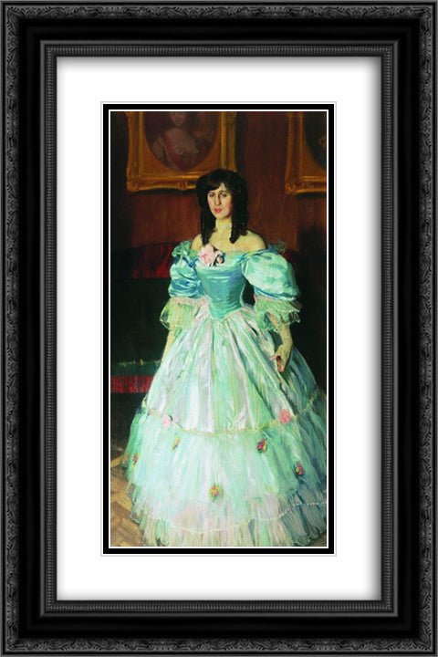Portrait of a Woman in Blue (Portrait P. Sudkovskaya) 16x24 Black Ornate Wood Framed Art Print Poster with Double Matting by Kustodiev, Boris