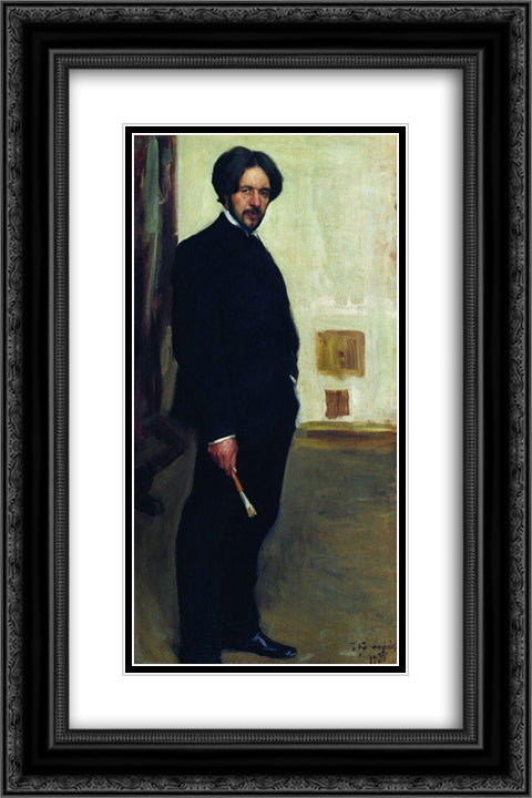 Portrait of D.F. Bogoslovsky 16x24 Black Ornate Wood Framed Art Print Poster with Double Matting by Kustodiev, Boris