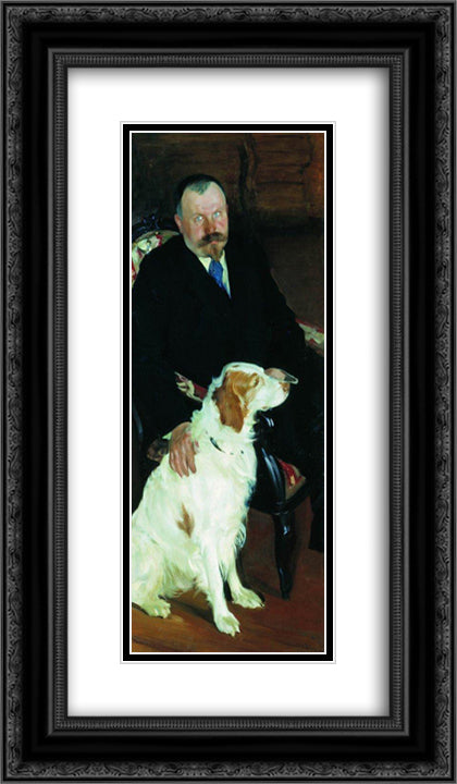 Portrait of Dr. S. Y. Lyubimov with dog 14x24 Black Ornate Wood Framed Art Print Poster with Double Matting by Kustodiev, Boris