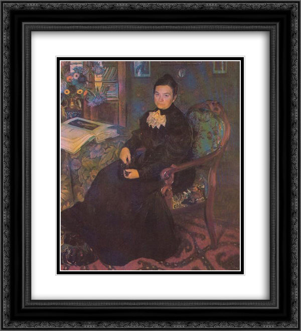 Portrait of E.Kustodieva, Artist's Mother 20x22 Black Ornate Wood Framed Art Print Poster with Double Matting by Kustodiev, Boris