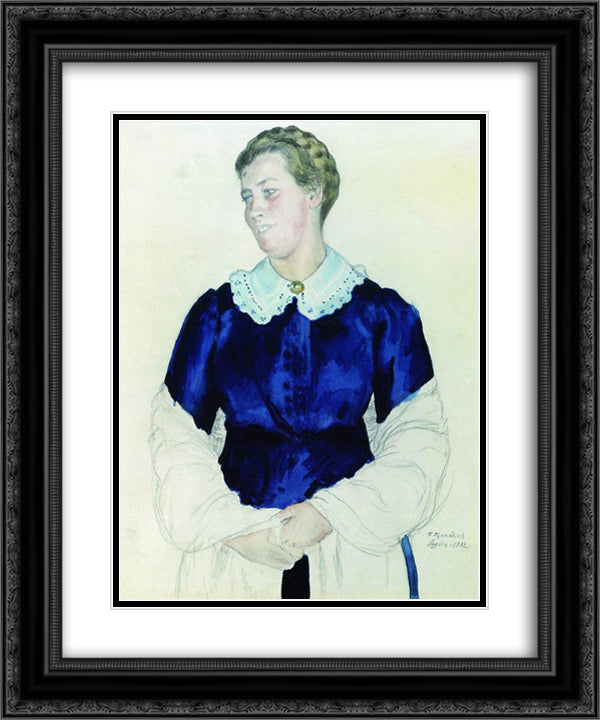 Portrait of Elizabeth Mikhailovna Botkina 20x24 Black Ornate Wood Framed Art Print Poster with Double Matting by Kustodiev, Boris