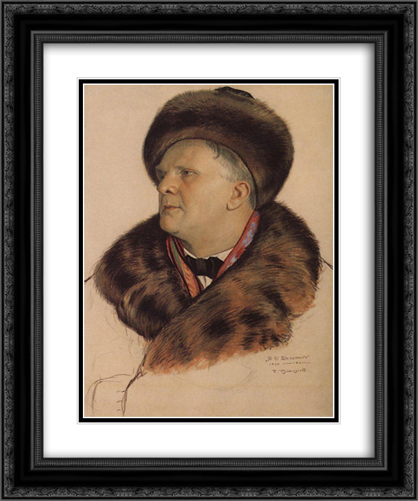 Portrait of F.I. Chaliapin 20x24 Black Ornate Wood Framed Art Print Poster with Double Matting by Kustodiev, Boris