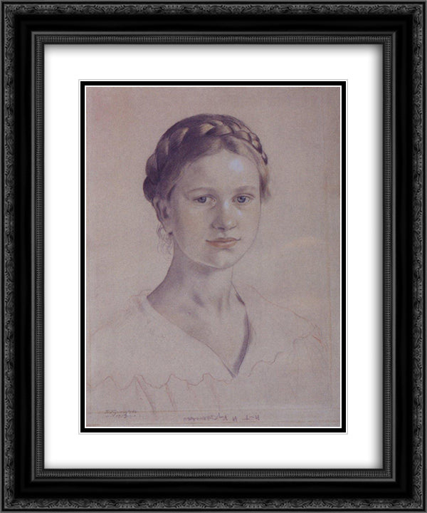 Portrait of I.B. Kustodieva, daughter of the artist 20x24 Black Ornate Wood Framed Art Print Poster with Double Matting by Kustodiev, Boris