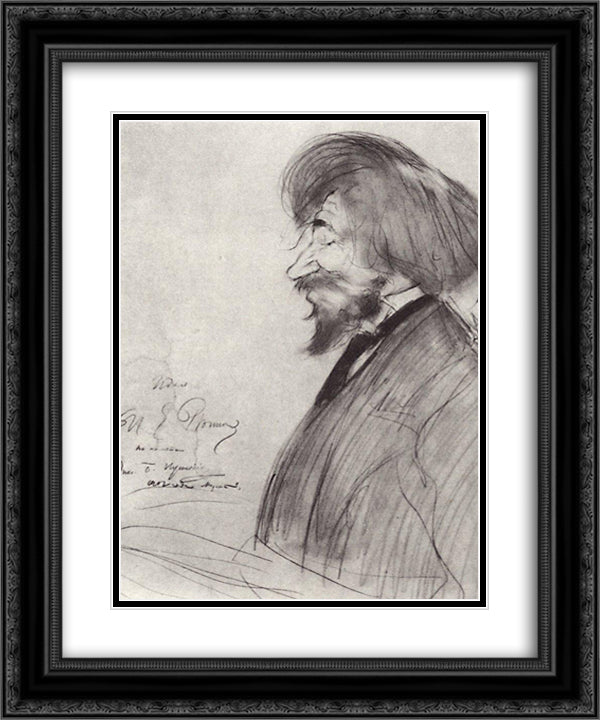 Portrait of Ilya Repin 20x24 Black Ornate Wood Framed Art Print Poster with Double Matting by Kustodiev, Boris
