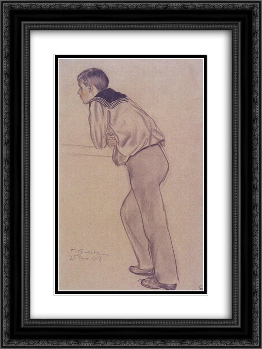Portrait of K.B. Kustodiev 18x24 Black Ornate Wood Framed Art Print Poster with Double Matting by Kustodiev, Boris