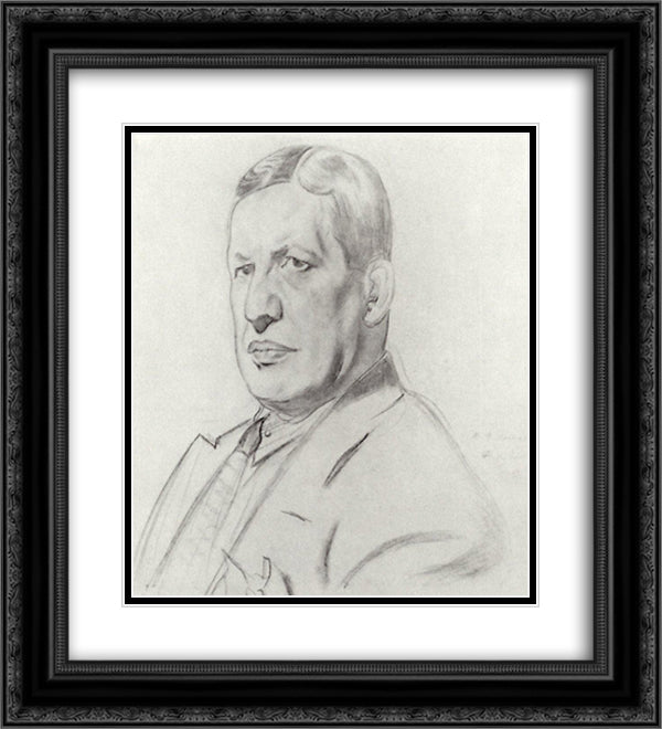 Portrait of Nikolay Monakhov 20x22 Black Ornate Wood Framed Art Print Poster with Double Matting by Kustodiev, Boris