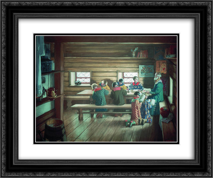 School in Moscow Russia 24x20 Black Ornate Wood Framed Art Print Poster with Double Matting by Kustodiev, Boris