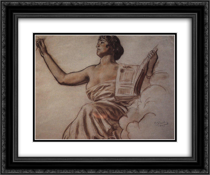 Seated Woman with a book 24x20 Black Ornate Wood Framed Art Print Poster with Double Matting by Kustodiev, Boris