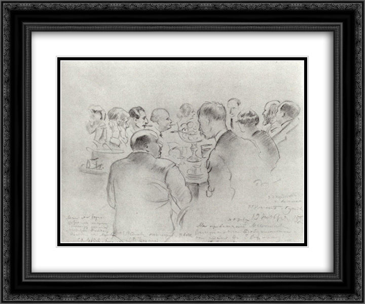 Seeing off M.V. Dobuzhinsky in Europe 24x20 Black Ornate Wood Framed Art Print Poster with Double Matting by Kustodiev, Boris