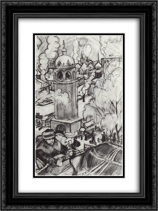 Self Portrait with wife 18x24 Black Ornate Wood Framed Art Print Poster with Double Matting by Kustodiev, Boris