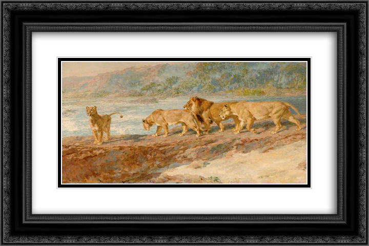 On the Bank of an African River 24x16 Black Ornate Wood Framed Art Print Poster with Double Matting by Riviere, Briton