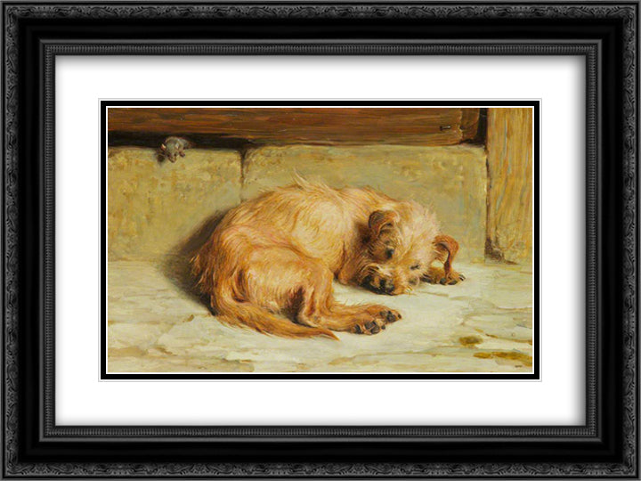 Watching Dog 24x18 Black Ornate Wood Framed Art Print Poster with Double Matting by Riviere, Briton