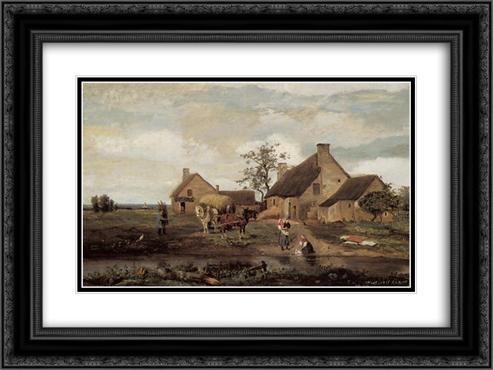 A Farm in the Nievre 24x18 Black Ornate Wood Framed Art Print Poster with Double Matting by Corot, Jean Baptiste Camille