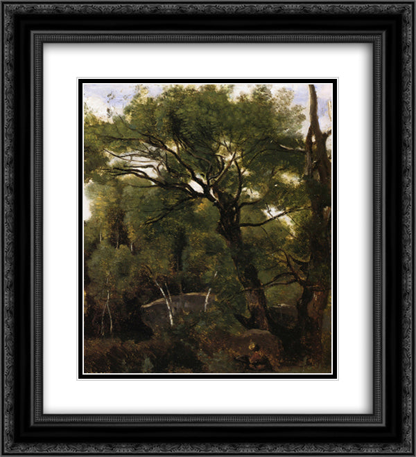 An Artist Painting in the Forest of Fountainebleau 20x22 Black Ornate Wood Framed Art Print Poster with Double Matting by Corot, Jean Baptiste Camille