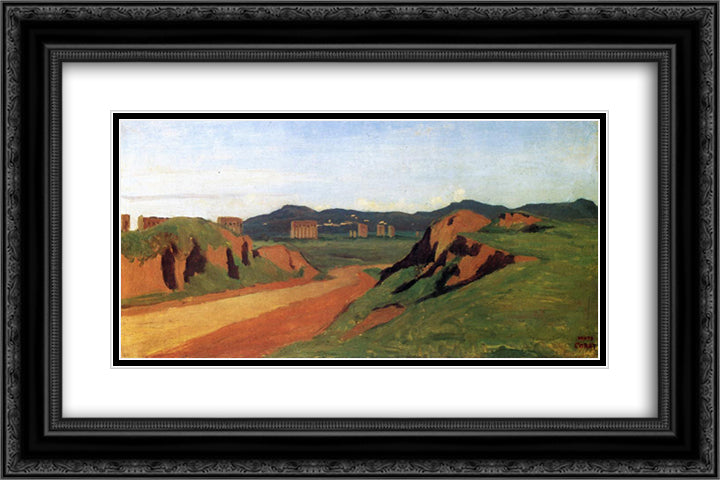 Aqueducts in the Roman Campagna 24x16 Black Ornate Wood Framed Art Print Poster with Double Matting by Corot, Jean Baptiste Camille