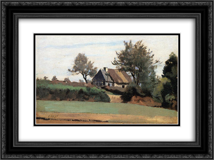 Archicourt, Near Arras 24x18 Black Ornate Wood Framed Art Print Poster with Double Matting by Corot, Jean Baptiste Camille