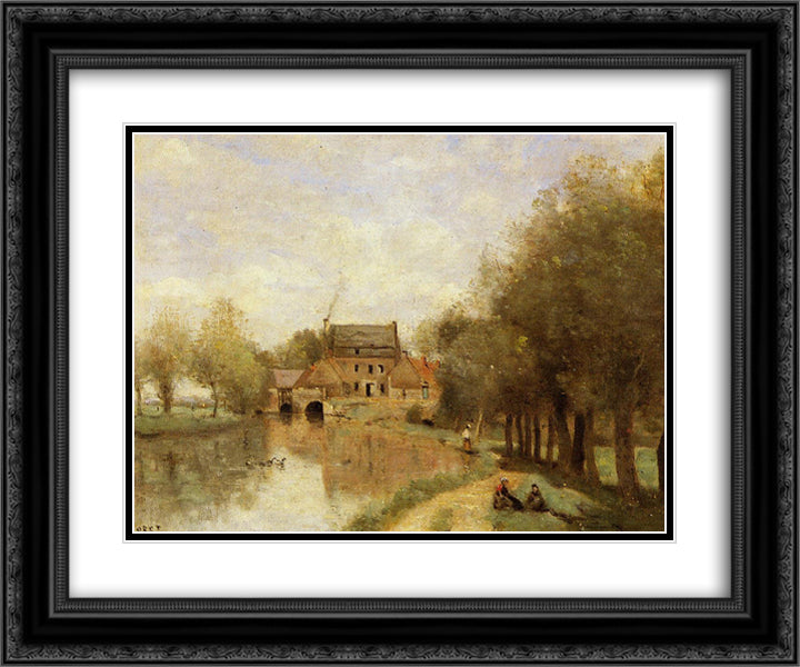 Arleux du Nord, the Drocourt Mill, on the Sensee 24x20 Black Ornate Wood Framed Art Print Poster with Double Matting by Corot, Jean Baptiste Camille