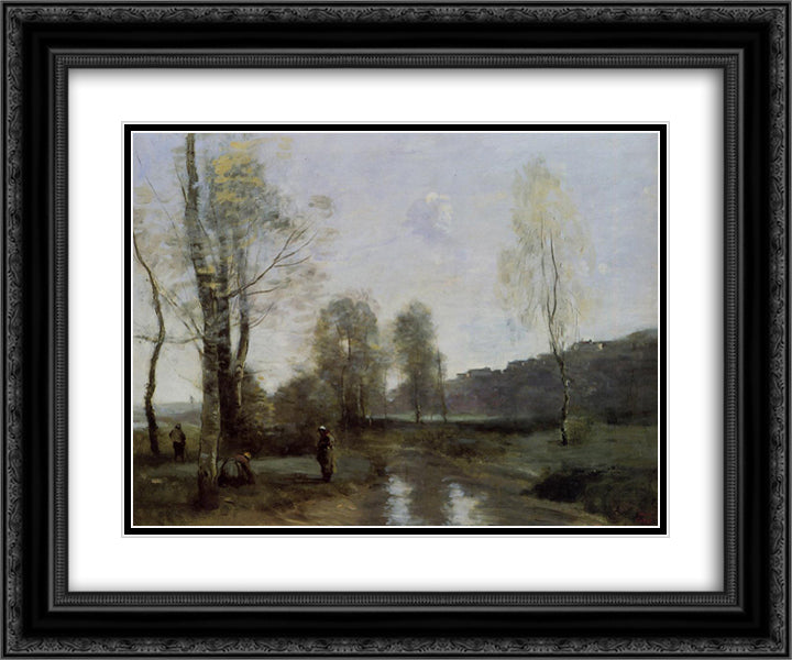 Canal in Picardi 24x20 Black Ornate Wood Framed Art Print Poster with Double Matting by Corot, Jean Baptiste Camille