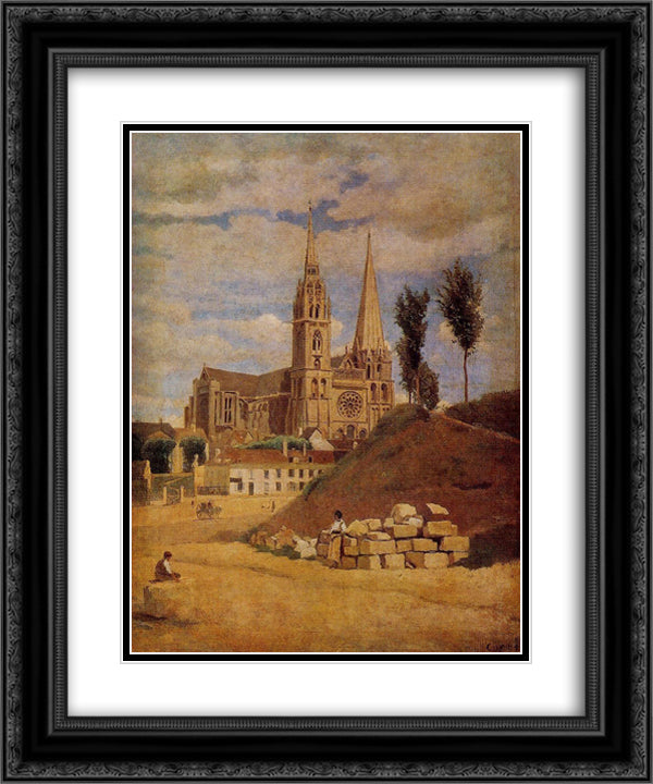 Chartres Cathedral 20x24 Black Ornate Wood Framed Art Print Poster with Double Matting by Corot, Jean Baptiste Camille