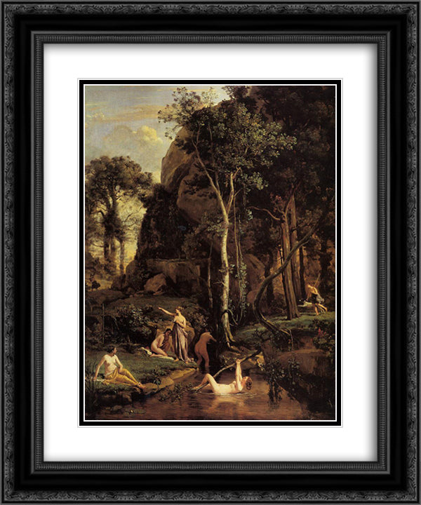 Diana Surprised at Her Bath 20x24 Black Ornate Wood Framed Art Print Poster with Double Matting by Corot, Jean Baptiste Camille