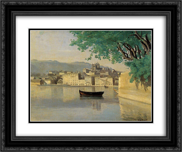 Geneva View of Part of the City 24x20 Black Ornate Wood Framed Art Print Poster with Double Matting by Corot, Jean Baptiste Camille