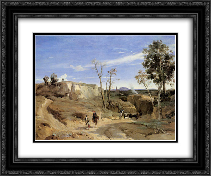 La Cervara, the Roman Countryside 24x20 Black Ornate Wood Framed Art Print Poster with Double Matting by Corot, Jean Baptiste Camille