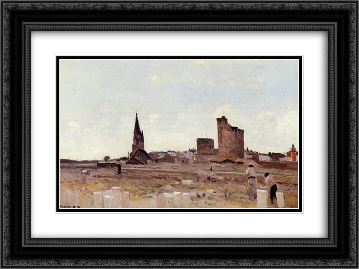 La Rochelle Quarry near the Port Entrance 24x18 Black Ornate Wood Framed Art Print Poster with Double Matting by Corot, Jean Baptiste Camille