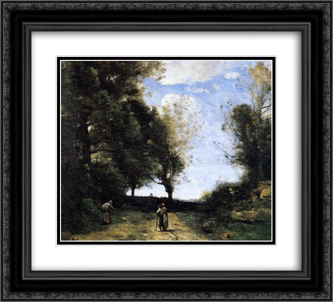 Landscape with Three Figures 22x20 Black Ornate Wood Framed Art Print Poster with Double Matting by Corot, Jean Baptiste Camille