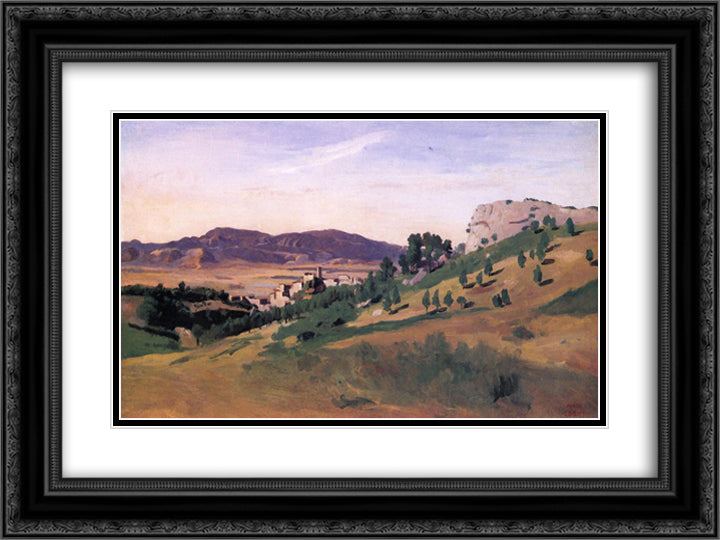 Olevano, the Town and the Rocks 24x18 Black Ornate Wood Framed Art Print Poster with Double Matting by Corot, Jean Baptiste Camille