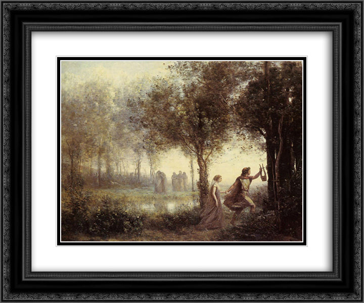 Orpheus Leading Eurydice from the Underworld 24x20 Black Ornate Wood Framed Art Print Poster with Double Matting by Corot, Jean Baptiste Camille