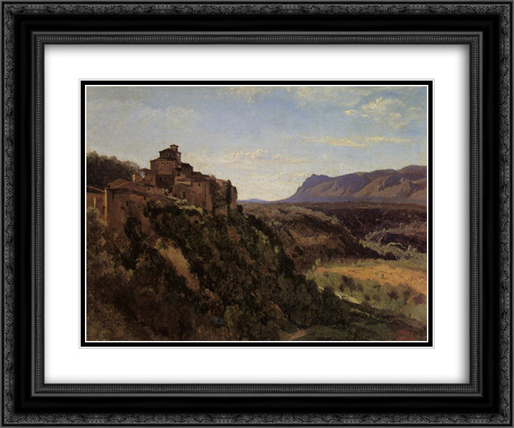 Papigno, Buildings Overlooking the Valley 24x20 Black Ornate Wood Framed Art Print Poster with Double Matting by Corot, Jean Baptiste Camille