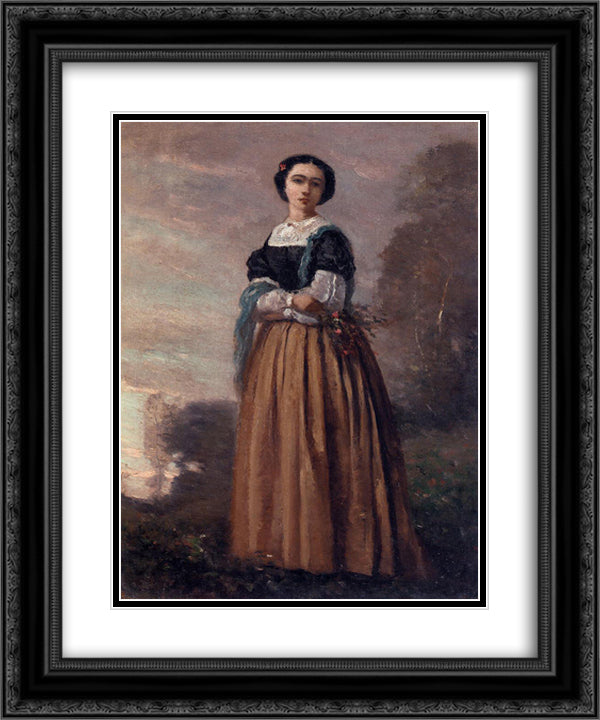 Portrait of a Standing Woman 20x24 Black Ornate Wood Framed Art Print Poster with Double Matting by Corot, Jean Baptiste Camille