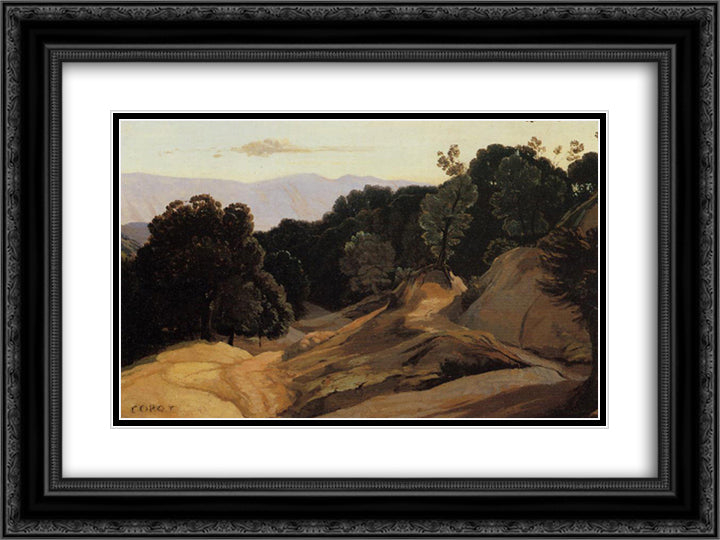 Road through Wooded Mountains 24x18 Black Ornate Wood Framed Art Print Poster with Double Matting by Corot, Jean Baptiste Camille