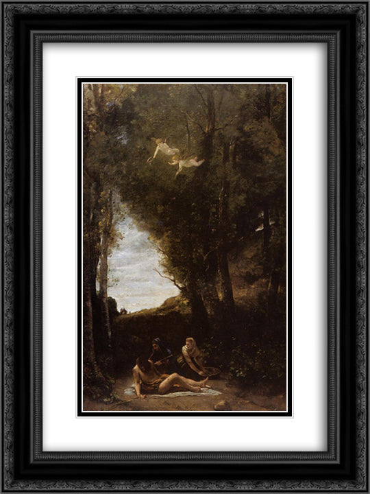 Saint Sebastian in a Landscape 18x24 Black Ornate Wood Framed Art Print Poster with Double Matting by Corot, Jean Baptiste Camille