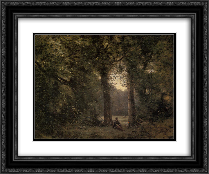 Souvenir of Ville d'Avray 24x20 Black Ornate Wood Framed Art Print Poster with Double Matting by Corot, Jean Baptiste Camille