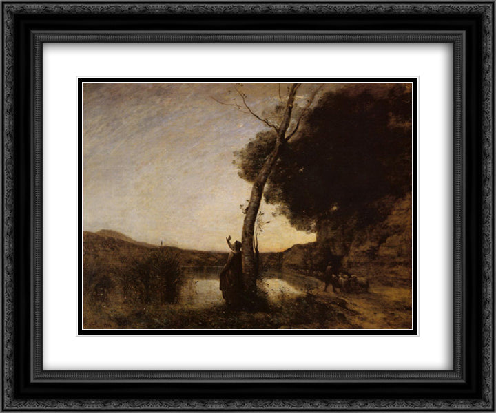 The Evening Star 24x20 Black Ornate Wood Framed Art Print Poster with Double Matting by Corot, Jean Baptiste Camille